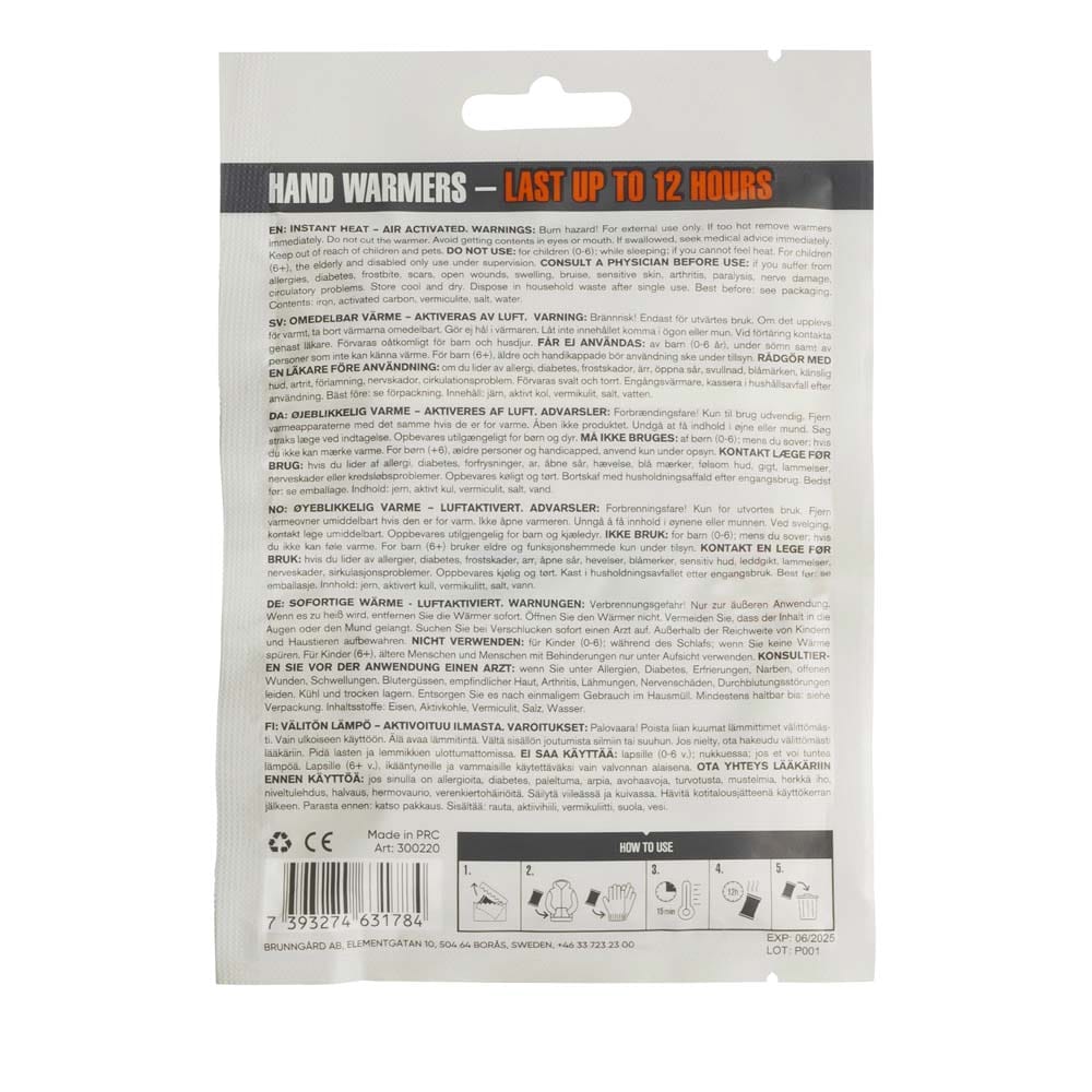 Springyard Hand Warmers är idealiska för friluftsentusiaster och kalla vinterdagar. Placera dem i dina vantar eller fickor för att hålla händerna varma hela dagen. Med en temperatur på ca 55 °C i upp till 12 timmar ger de långvarig komfort. CE-märkta och enkla att använda, dessa engångsvärmekuddar är ett måste för kalla äventyr.