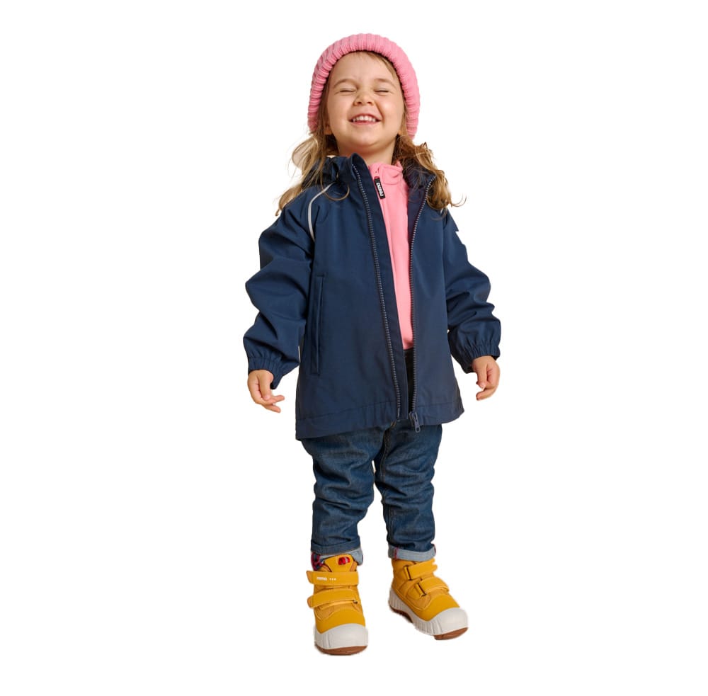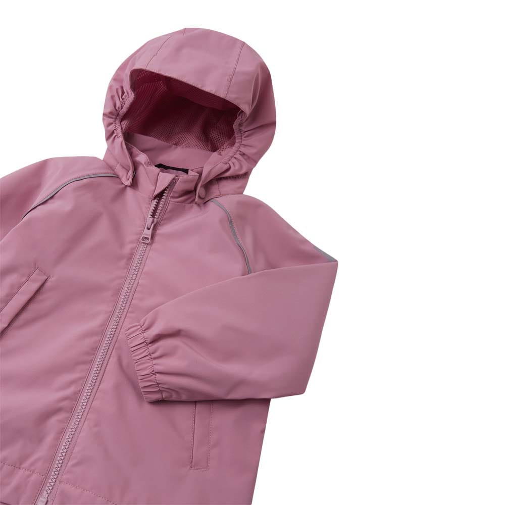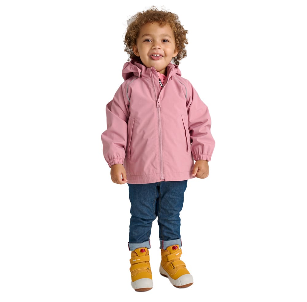 Reima Hete är en funktionell skaljacka som skyddar mot regn tack vare dess Reimatec-tyg med flourkarbonfri ytbehandling. Den klarar en vattenpelare på upp till 10000 mm vilket anses vara mycket bra vattentäthet och ett gott skydd mot smuts. Förseglade sömmar gör att väderskyddet blir optimalt. Jackan har en avtagbar huva med meshfoder. På insidan av jackan finns ett mjukt polyesterfoder. Finns i storlekar för barn i åldrarna 1 – 5 år. Denna produkt har cirka 6 cm tillväxtmån och kan med stor sannolikhet passa hela säsongen.