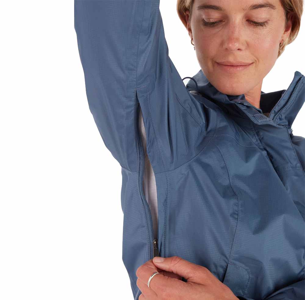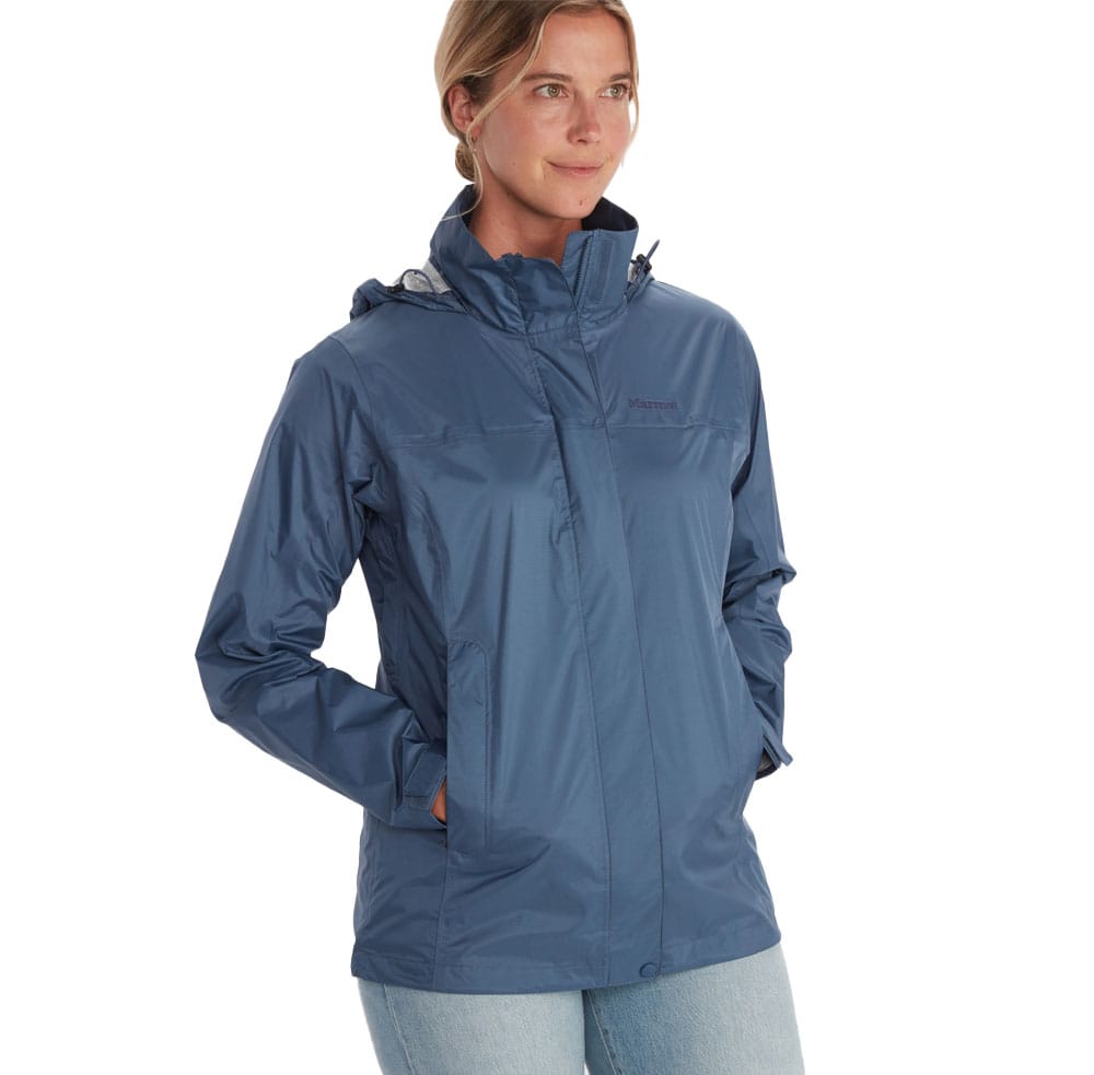Marmot Women’s Precip Eco Jacket är en hållbar regnjacka för dam som känns lätt på kroppen. Den är tillverkad av Marmot NanoPro, ett vattentätt och andningsbart tyg av 100 procent lättviktig och PFC-fri nylon. Jackan håller dig torr i regnigt väder samtidigt som den effektivt släpper ut fukten under mer fysiskt krävande aktiviteter. Du har dessutom dragkedjor under ärmarna som du kan öppna om det skulle bli för varmt för ännu bättre ventilation. Utöver det är jackan också utrustad med en justerbar fåll, en huva och ett fodrat hakskydd.