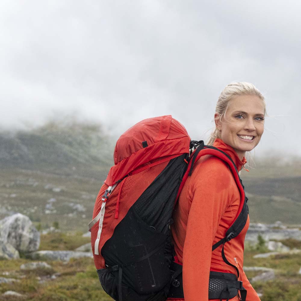 • Bärsystem: Utrustad med Bergans QuickAdjust™ PRO-system och justerbar torsolängd, vilket möjliggör en personlig passform. Dessutom har ryggsäcken en artikulerad höftbälte och bekvämt trippeldensitetsskum för ökad bärkomfort.