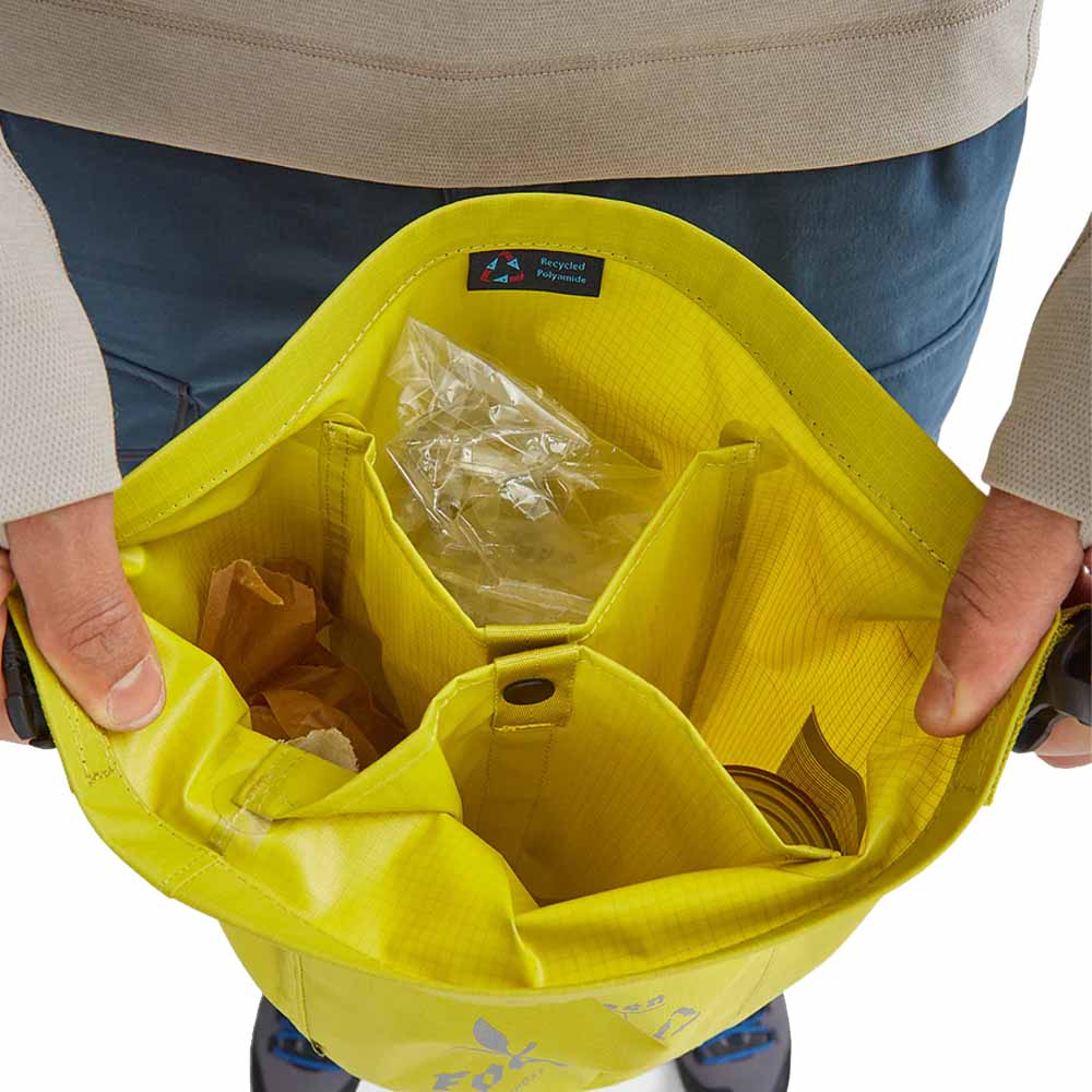Recycling Bag 2.0 från Klättermusen är en återanvändbar återvinningsväska som gör det möjligt att ta hand om ditt avfall när det inte finns några andra alternativ, exempelvis på en vandring. Väskan är lätt och har en roll-top-öppning samt fyra separerade fack så att du enkelt kan sortera olika sorters avfall. Här finns också en fästpunkt för ryggsäck samt en logotyp i reflekterande material som ökar din synlighet i mörka miljöer.