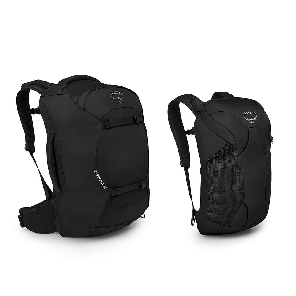 Osprey Farpoint 55 ryggsäck är en smart följeslagare för äventyrslystna personer som behöver en rymlig och bekväm ryggsäck. Med justerbar rygglängd, avlastande LightWire-ram och ventilerande bärsystem är väskan utmärkt för långa resor. Dess stora kapacitet och smarta förvaringslösningar gör den optimal för äventyrliga resor med mycket packning. Osprey Daypack 15 liter medföljer för lättare dagsutflykter.