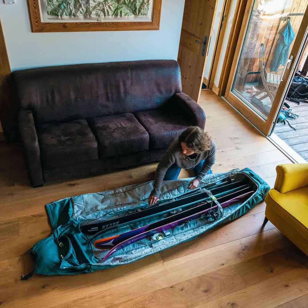 För äventyraren på snöklädda berg är Osprey Mountain Bound Roller skidväska ett pålitligt val. Den är idealisk för resenärer som bär upp till två skidpar eller snowboards, upp till 195 cm långa. Robust chassi, stora hjul och NanoTough™-material garanterar säker transport i utmanande terräng. Smidig hantering tack vare justerbar längd och flera bärhandtag.