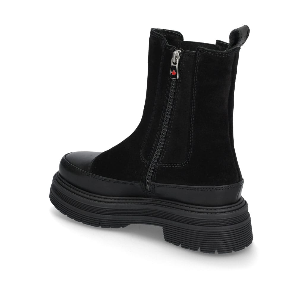 Mount Caia Chelsea-boots från Canada Snow är idealiska för kvinnor som söker stil och komfort i kalla väder. Varmt ullmixfoder, isolerande innersula och robust yttersula gör dem utmärkta för vinterpromenader i både stadsmiljö och skog. Elastiska sidor och läder med präglade logodetaljer ger både elegans och funktionalitet.