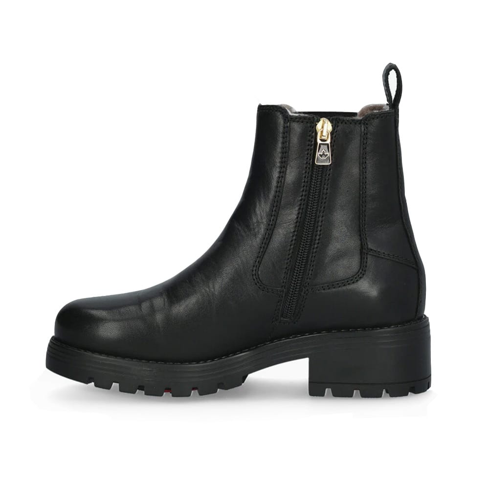 Canada Snow Mount Kimberly är idealiska för kallt vinterväder och hala vägar. Tillverkade i slitstarkt läder med värmande ullblandning och fyra lager termisk isolering i innersula som ger bra skydd mot kylan underifrån. Gummisulan med ALPI-systemets infällbara broddar gör dem till ett utmärkt val för halkiga underlag.