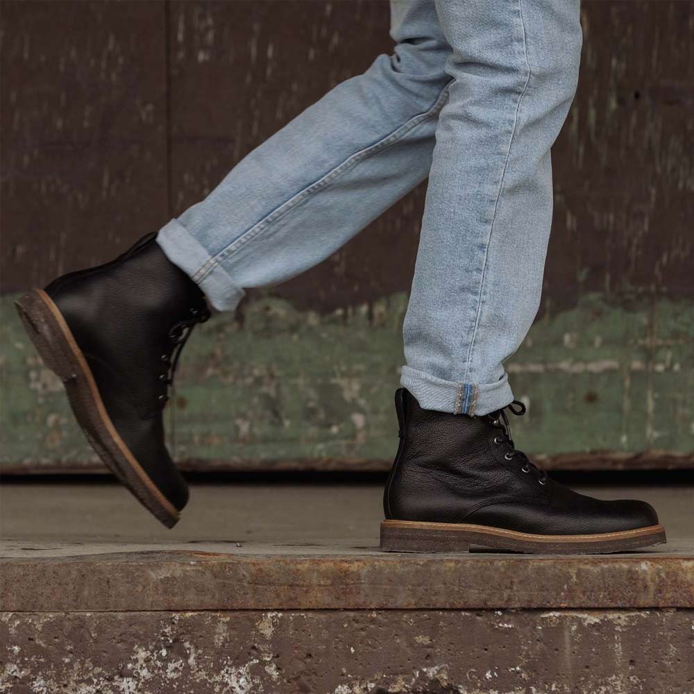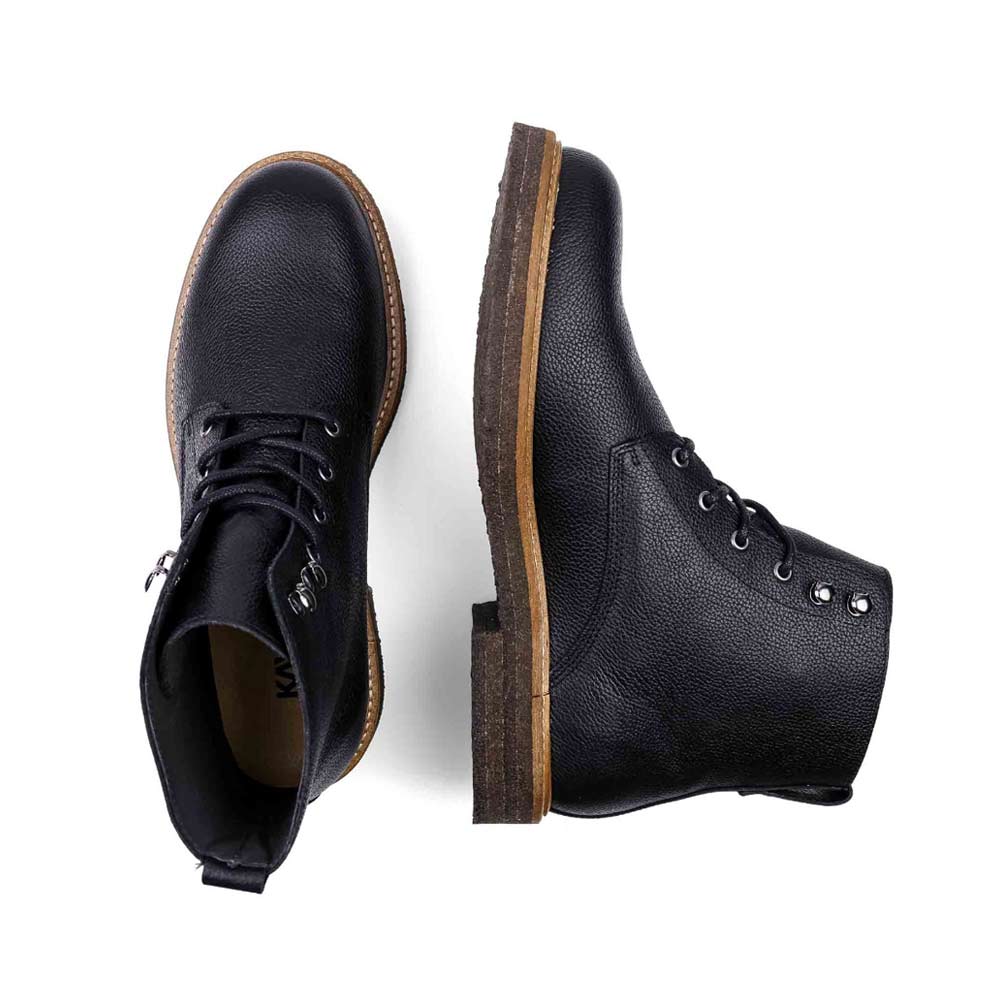 Kavat Berge herrkängor är ett utmärkt val för höstens och vinterns äventyr. Tillverkade i kvalitetsläder och slitstark rågummisula får du både stil och komfort. Dessutom är skorna vattenavvisande och helt utan PFAS. Ett stilrent alternativ med snygg snörning!