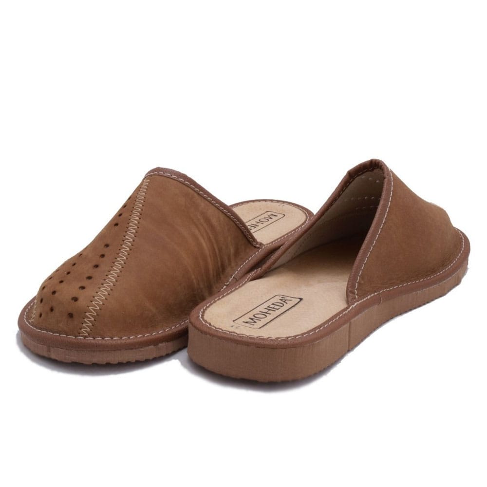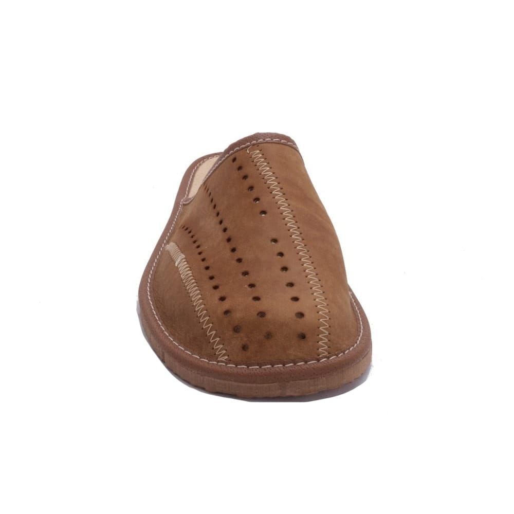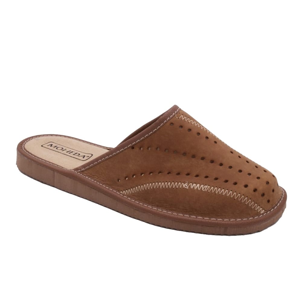 Denna klassiska retrotoffel är perfekt för de som vill promenera med svala och bekväma fötter. Med en snygg perforerad ovandel ger den extra svalka under varma sommardagar. Tillverkad i äkta läder både på ovandelen och innersulan vilket ger skön passform och komfort. Yttersulan i PU-material gör toffeln användbar både inne och ute. En mångsidig och skön toffel för alla tillfällen.