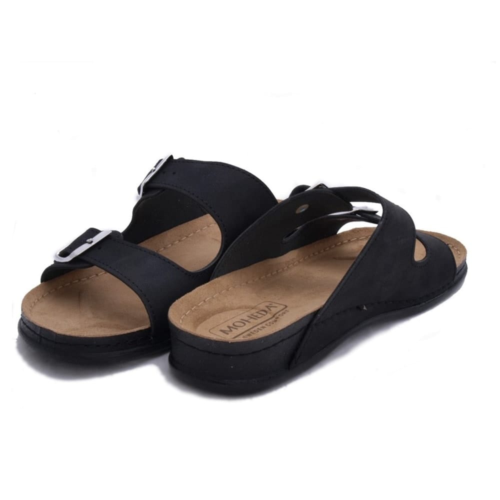 Moheda Birka tofflor är ergonomiska och stilrena sandaler. Sandalens reglerbara spänne ger en bra passform och den välformade innersulan ger stadga. Innersulan är ergonomiskt utformad för stabilitet och komfort. Sulan är formgiven för att ge stöd vid hälen, fotvalvet och tårna. Lämpliga för både inomhus- och utomhusbruk. Perfekt för den som vill ha bekväma, stilrena tofflor med stöd för fötterna.