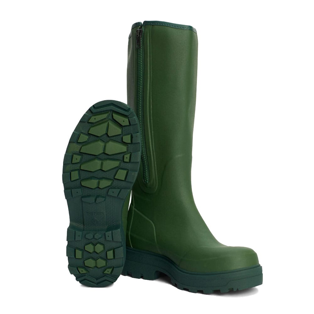 En elegant och snygg gummistövel som passar utmärkt att ta sig fram i urbana miljöer när du vill se proper ut, samtidigt som den klarar av den tuffaste terrängen. Stöveln är handgjord och har en perfekt balans mellan att vara robust och elegant. Den rejäla yttersulan gör gummistöveln stabil och ger den en hög vridstyvhet. Det höga skaftet är utrustad med en dragkedja för att stöveln ska vara lätt att ta av och på. Skaftet är försedd med en mjuk toppbindning för att kanten inte ska skava mot benet.