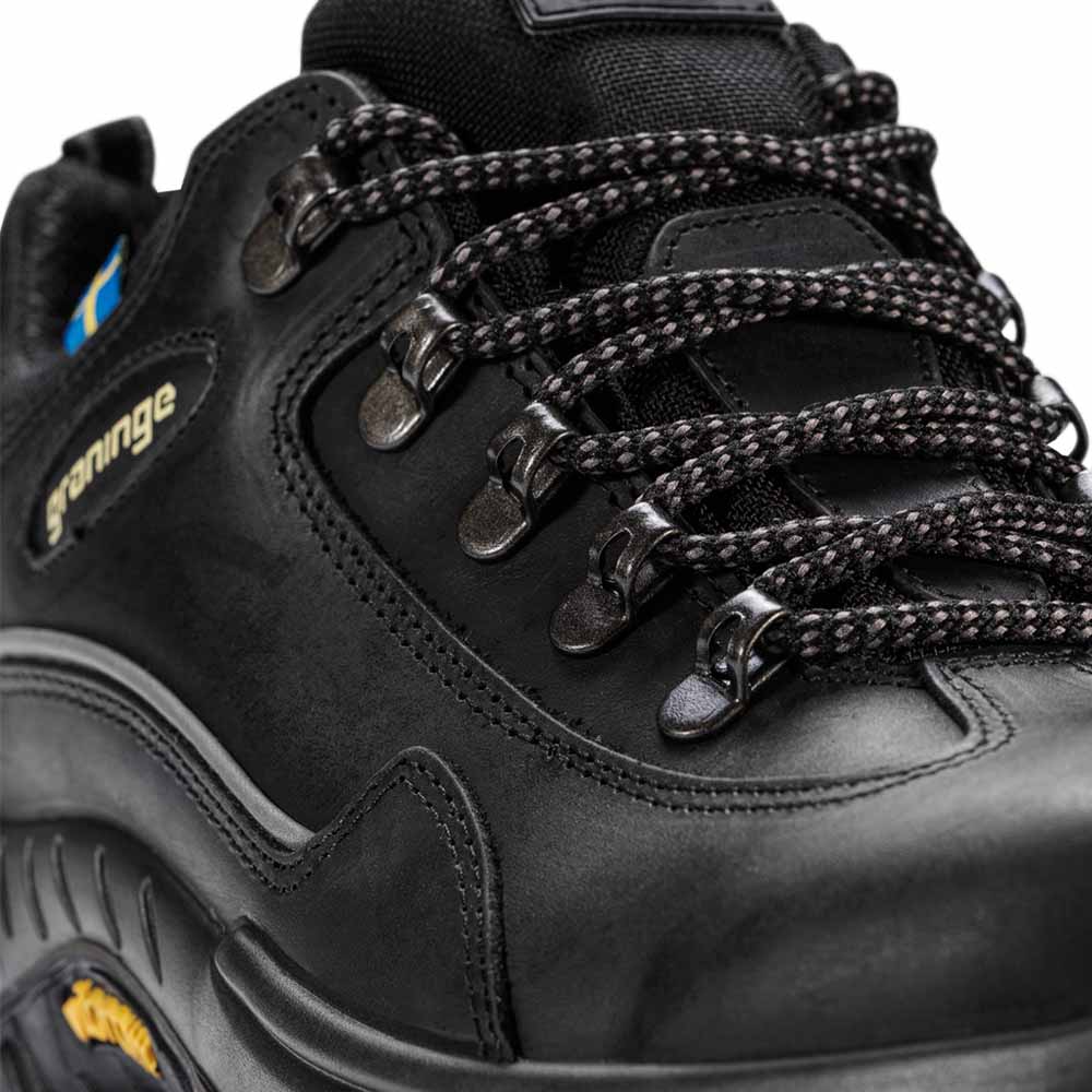 För en ännu bättre hållbarhet har Graninge försett Stenstavik med en rejäl snörning och slitstarka metallöljetter. På sidan av skon finns även reflexdetaljer, vilket gör dig synligare när du promenerar i dåligt upplysta miljöer.