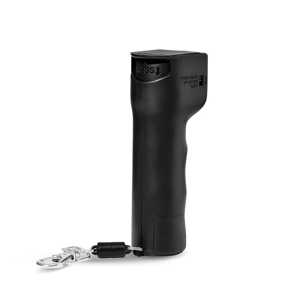 På sidan av din självförsvarsspray finns det en spak där du kan testa alla funktioner utom mentolsprayen. Det är ett sätt att känna sig säker på att batteriet håller och att funktionerna är igång. Sprayen räcker i ca 10 sekunder, men du bör inte testa den eftersom den då inte kommer att fungera som den ska vid ett skarpt läge.