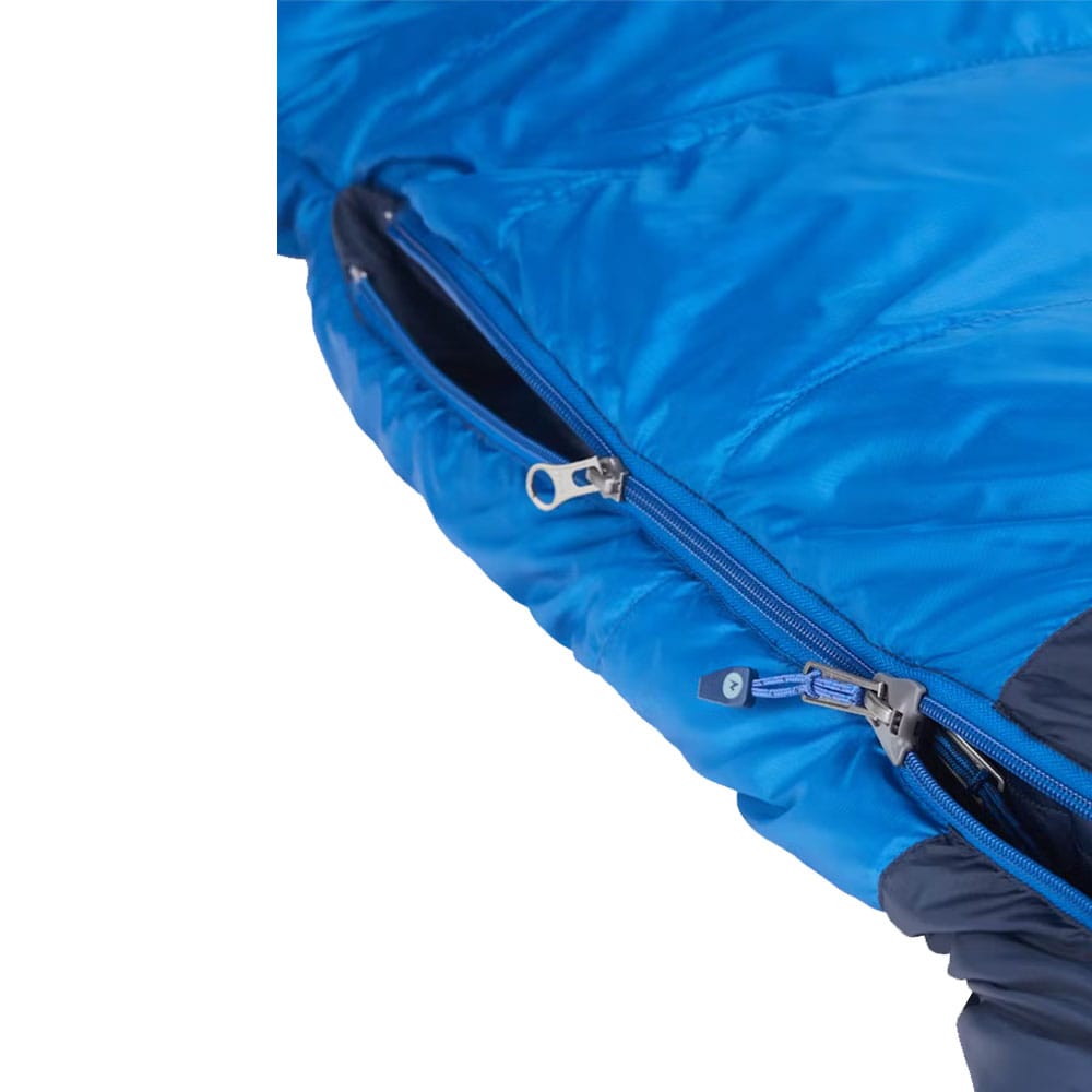 - Vattentät och slitstark: Sovsäcken är behandlad med Down Defender för förbättrad vattenresistens i våta förhållanden och har en dragkedja som går hela längden med lås, som även är skyddad av en Zip-Guard skjutreglage för att förhindra värmeförlust.