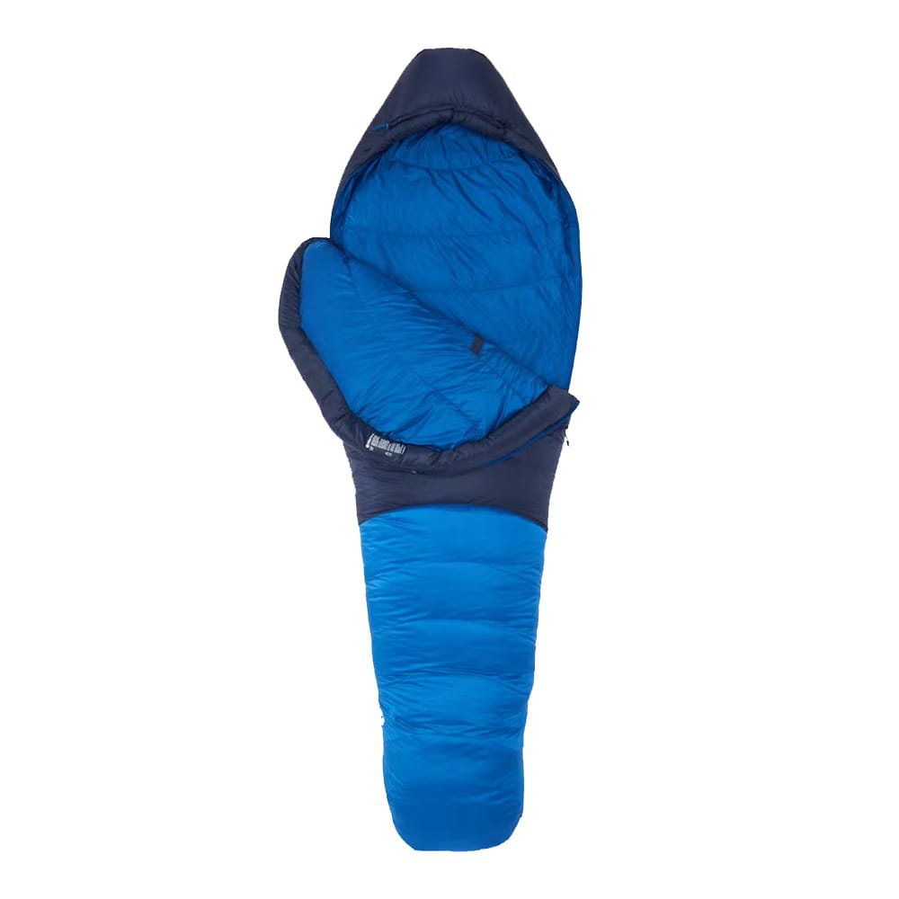 - Ventilation och tillgänglighet: Marmot Helium sovsäcken har en sekundär dragkedja som viks ner för ökad ventilation och enkel åtkomst. Den huvudsakliga dragkedjan har en “anti-snag slider” som minskar risken för att tyget fastnar.